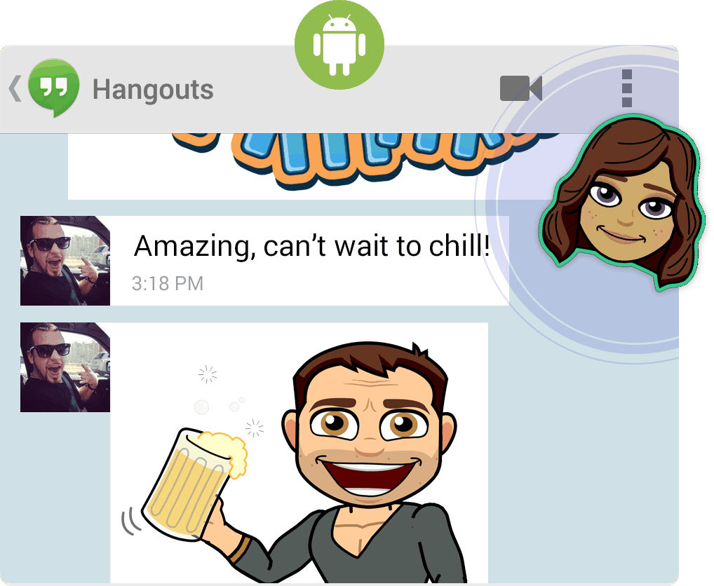 On Android we’ve included a shortcut in all of your favorite chat apps, making it a breeze to quickly share Bitmoji with friends.